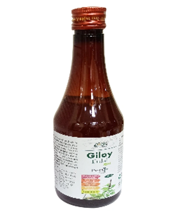 This proprietary syrup combines standardized Giloy extract with Tulsi and formulated excipients for palatability and stability; combined herbs may offer synergistic effects. -