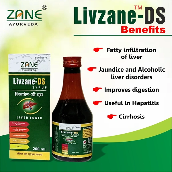 Livzane Ds is the best Ayurvedic remedy for the liver in India. It reduces toxins from the bloodstream and also effective for metabolizing alcohol and synthetic toxins. It serves to break down complex substances such as carbohydrates, proteins, and fats. It also helps in the creation and metabolism of hormones. Livzane Ds merges the healing properties of multiple liver-protecting herbs.